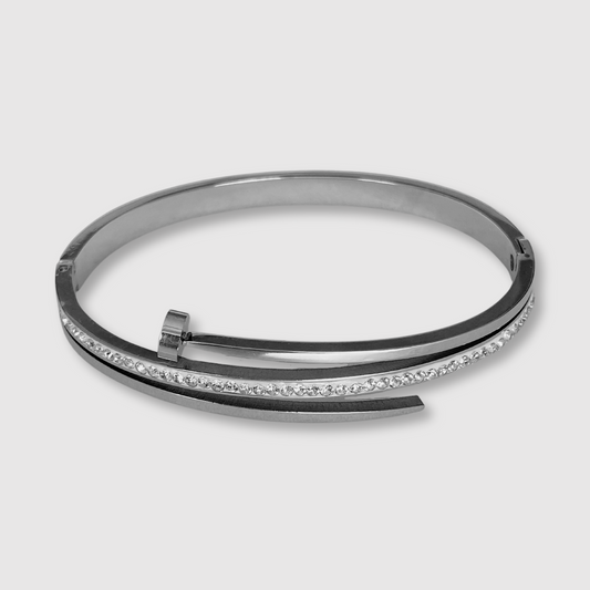 Bracelet-jonc Clouette-luxe, Acier inoxydable, clou, strass, non ajustable, couleur or